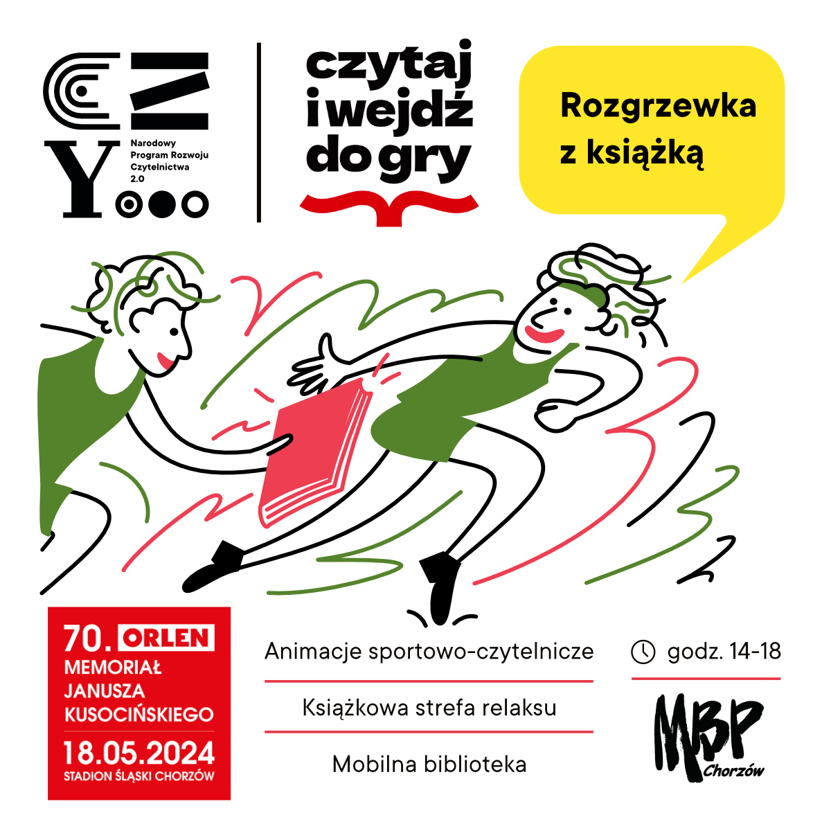 Zapraszamy serdecznie na rozgrzewkę z książką do strefy NPRCz 2.0 przed rozpoczęciem 70. Memoriału Janusza Kusocińskiego! Do zobaczenia!