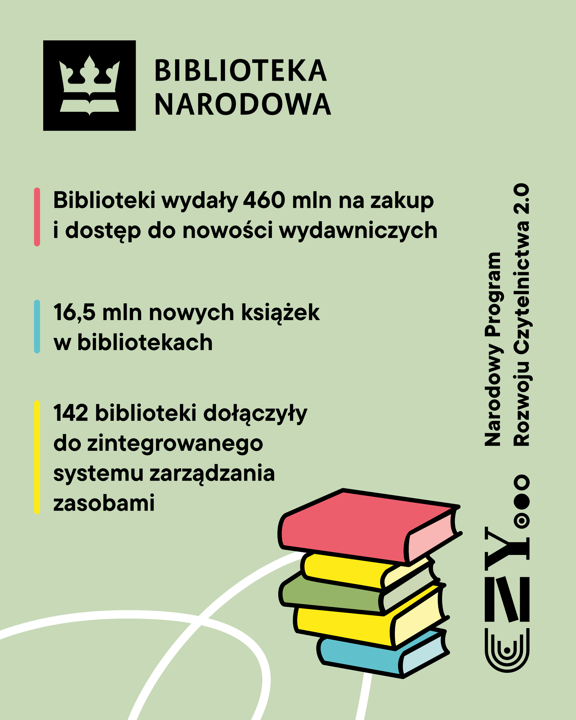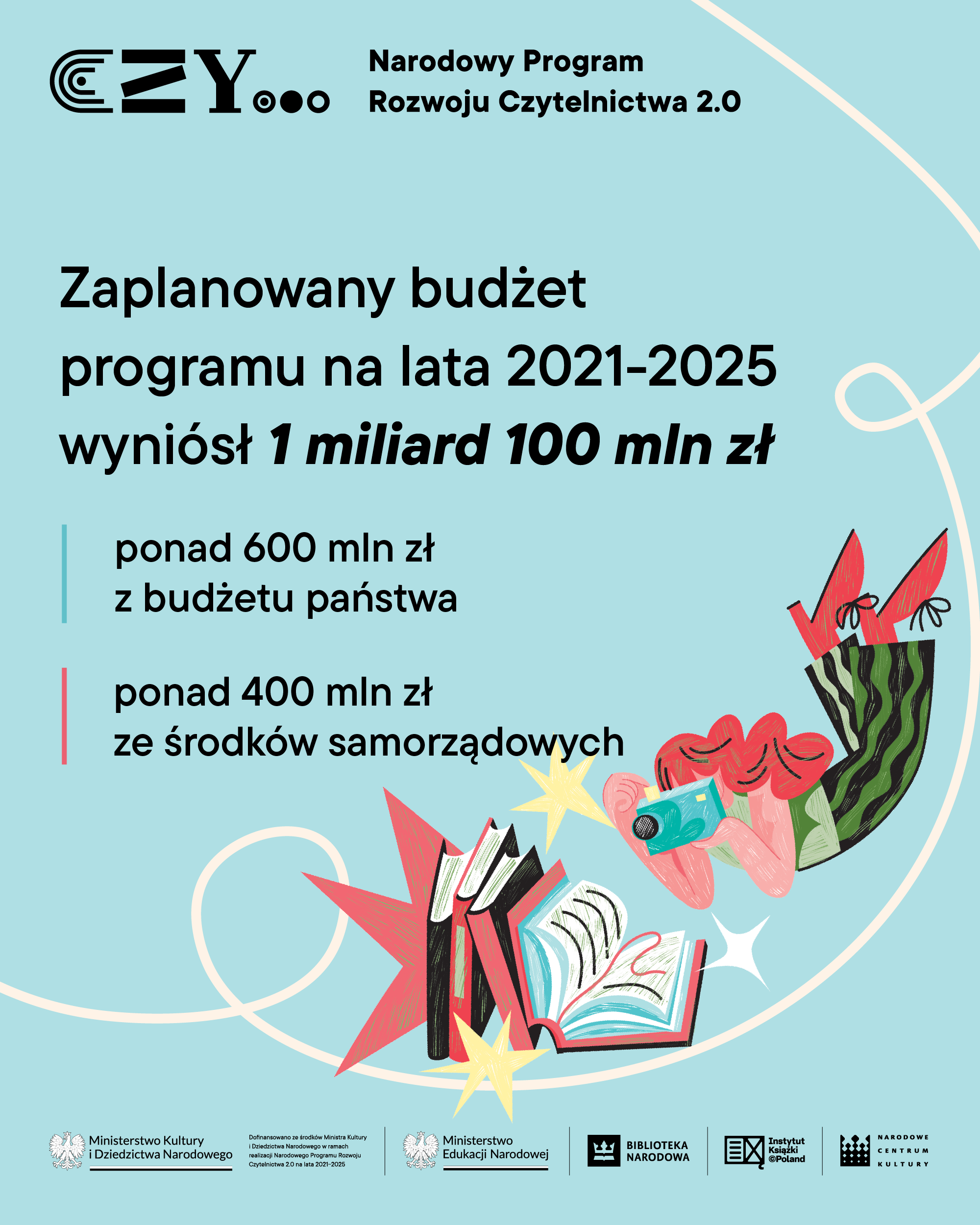 Narodowy Program Rozwoju Czytelnictwa 2.0. na lata 2021-2025 to wieloletni program rządowy, w ramach którego ponad miliard złotych zostanie przeznaczony na różne formy wsparcia i promocji czytelnictwa w Polsce. To największy i jeden z najważniejszych - z uwagi na skalę oddziaływania i budżet - programów wieloletnich Ministerstwa Kultury i Dziedzictwa Narodowego, realizowany we współpracy z Ministerstwem Edukacji i Nauki, Biblioteką Narodową, Instytutem Książki oraz Narodowym Centrum Kultury. Program ma na celu tworzenie warunków rozwoju i rozwój czytelnictwa w Polsce poprzez kształtowanie i promowanie postaw proczytelniczych oraz wzmacnianie roli bibliotek publicznych, pedagogicznych i szkolnych jako lokalnych ośrodków życia społecznego, stanowiących centrum dostępu do kultury i wiedzy. W skład NPRCz 2.0 wchodzą cztery priorytetowe obszary wsparcia, z których operatorem czwartego, obejmującego konkurs dotacyjny dla bibliotek i promocję czytelnictwa, jest Narodowe Centrum Kultury.