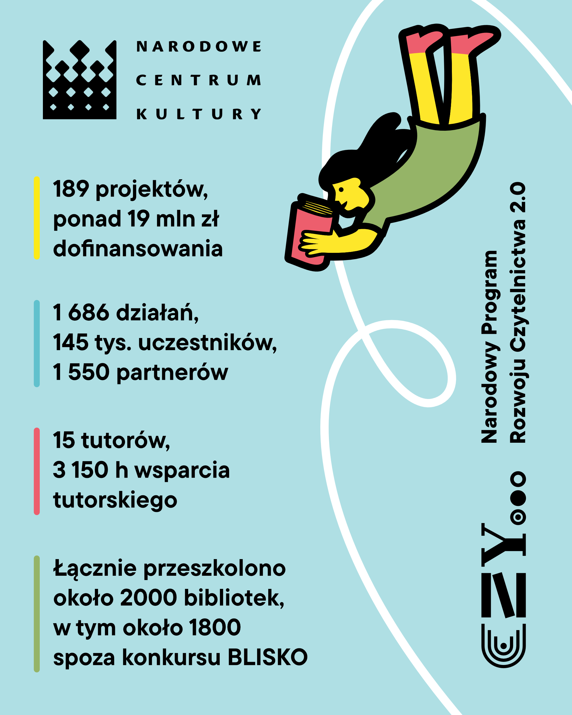 Dziękujemy bibliotekarkom i bibliotekarzom – bez Was to by się w ogóle nie udało. Dziękujemy za udział w Narodowym Programie Rozwoju Czytelnictwa 2.0, za konsekwentną popularyzację czytania książek i bibliotek jako miejsc przyjaznych i otwartych, gdzie każdy może czuć się jak u siebie.
